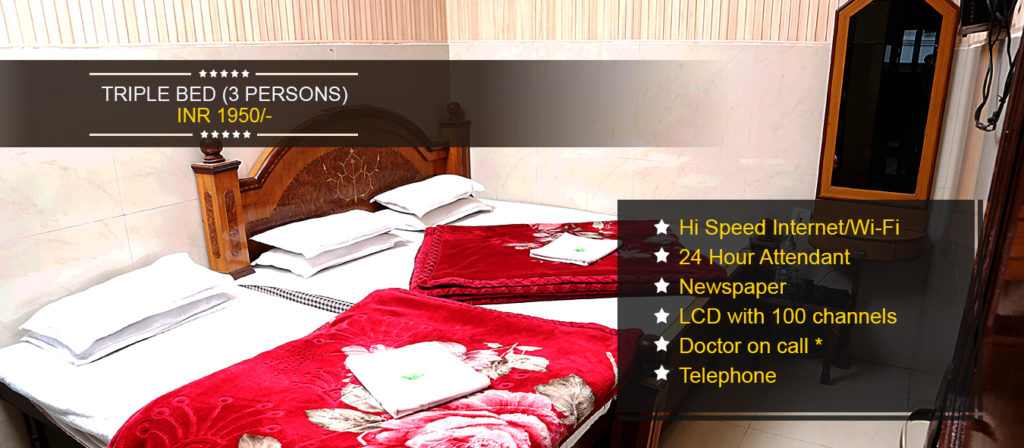 Space: 1 Double Bed + 1 Single Bed (Max 3 People In 1 Room) (Extra Persons Max 2) Total Numbers of Rooms 2